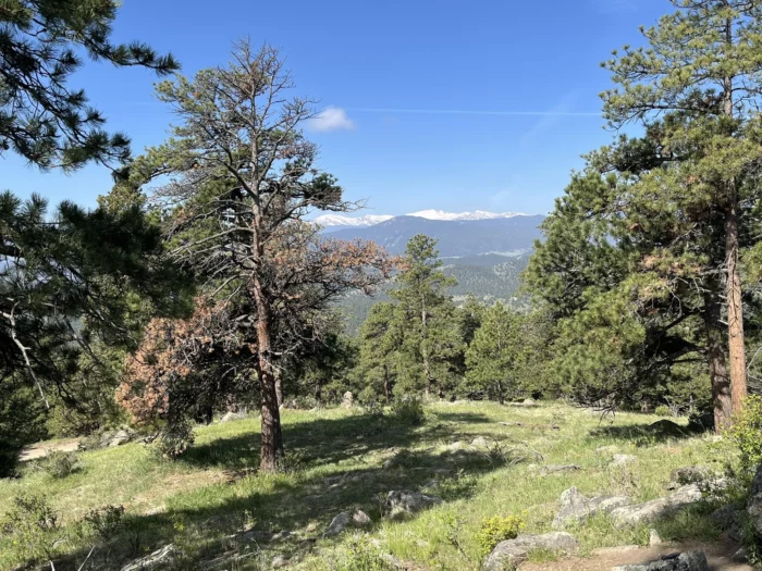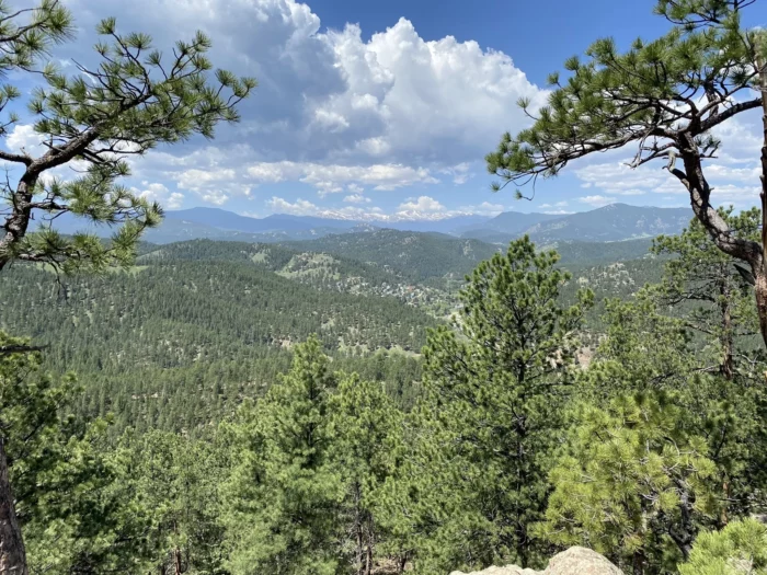 It winds through shady forest, slips past quiet meadows, then drops you onto Panorama Point, where the Front Range stretches out like it’s posing just for you.